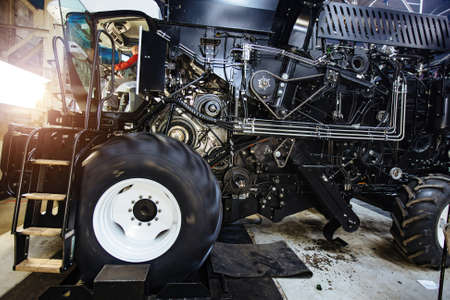 Close up of gears and bearings of modern industrial machine. Industrial background