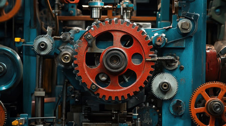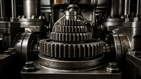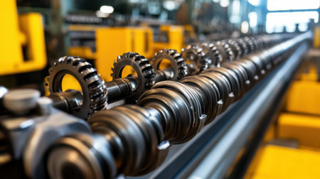 This close-up image highlights precision gears and mechanical components used in industrial machinery, emphasizing the intricate design and engineering involved in manufacturing processes.
