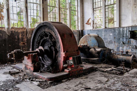 An evocative image showcasing a rusty piece of machinery in an abandoned factory. The decay and neglect highlight the remnants of industrial history and atmosphere.