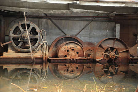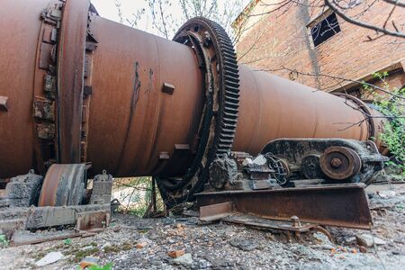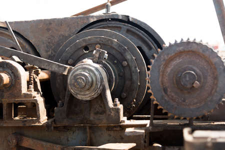 Rusty old mechanism. Abandoned production equipment. Old gear mechanism
