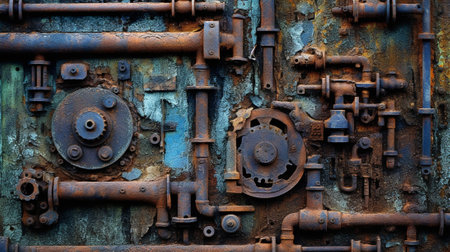 old rusty gears and pipes of oil pumps in old factory, created with generative ai