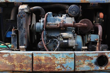 Used engine car parts, Rusty metal texture background, Close up & Macro shot, Selective focus