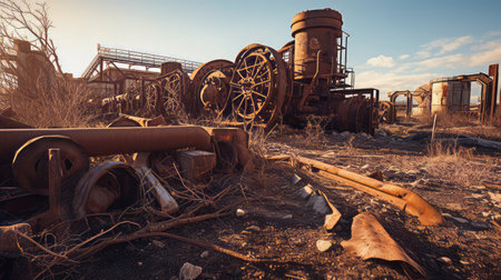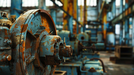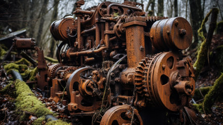 rusting industrial machinery, left behind in abandoned factory, created with generative ai