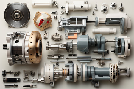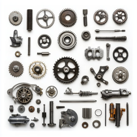 Machine parts arranged neatly, showcasing mechanical precision and detail
