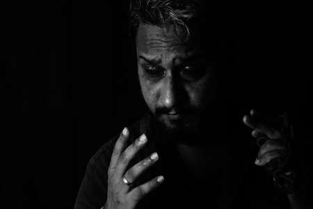 Emotions. Black and white portrait of a man