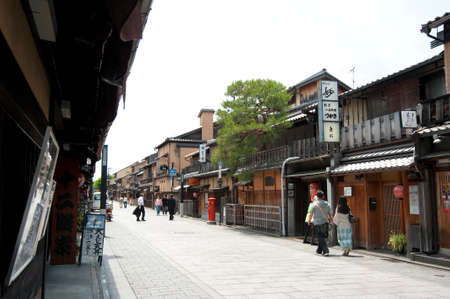 Shinbashi-dori street in Gion district 0 in Kyoto, Japan Shinbashi dori is one of the most beautiful streets in Kyoto, with restored traditional architecture