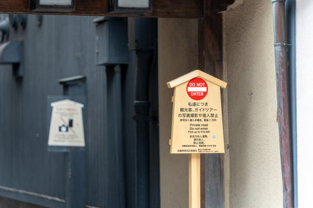 Kyoto, Japan - June 8 2024 : Sign of banning photography set up on Hanamikoji Street in Kyoto.