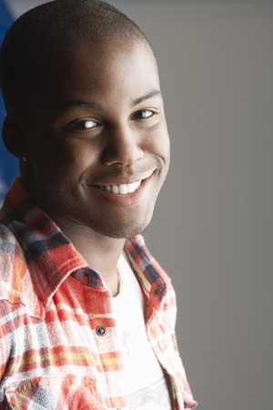 Studio shot of young happy man smiling