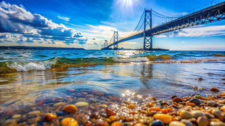 Crystal Clear Michigan Lake Shore with Mackinac Bridge - Macro Photography