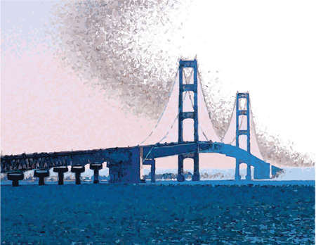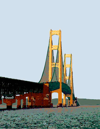 Mackinaw (Mackinac) bridge on a cloudy day in northern Michigan it's an suspension bridge. The Mackinaw bridge connects the upper peninsula to the lower peninsula. The bridge was Open to traffic November 1, 1957. The Mackinac bridge is also know as th