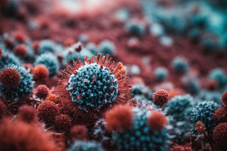 Coronavirus 2019-nCov novel coronavirus concept resposible for SARS-CoV-2 outbreak and coronaviruses influenza as dangerous flu strain cases as a pandemic. Microscope virus close up. 3d rendering