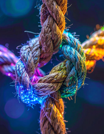 A vibrant, glowing knot symbolizes the complex and powerful connections of a digital network.