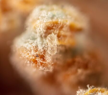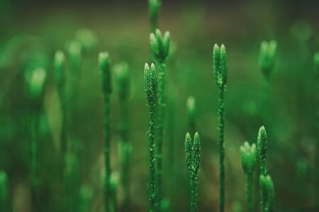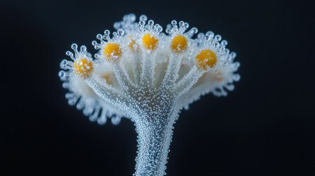 A macro photograph showing a closeup of a terrestrial plant under a microscope.