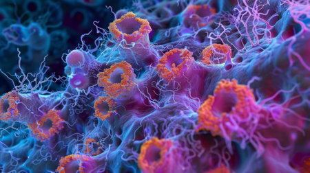 A highresolution image of tight junctions in epithelial cells displaying the various types and arrangements of proteins that make up these junctions