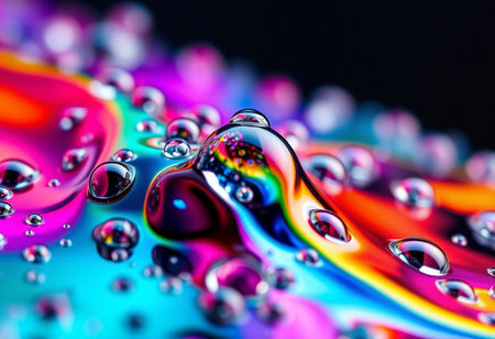 Oil bubbles in water as a colorful background. Macro image with shallow depth of field