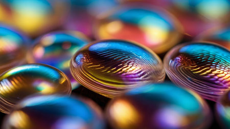 fluid or gel texture with a colorful and reflective shimmering iridescent background.