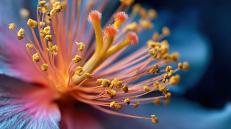 Medium shot focusing on macro photography highlighting intricate details of a single flowers stamen and textures with sharp clarity.
