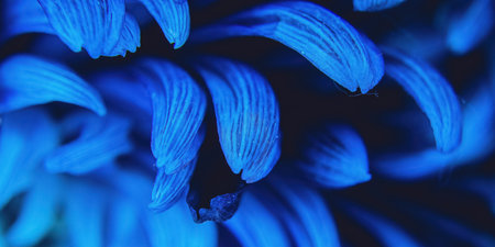 The macro up-close view of the petals of a blue chrysanthemum
