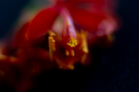 Macro shot of a red flower with a stamens.