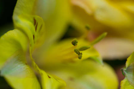 Abstract floral background with macro flower stamens. Soft selective focus. Blurred beautiful petal. Beautiful Macro of pink flower. Beautiful vivid macro of purple Rhododendron pistil and stamens