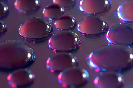 Ink foam. Bubble fluid flow. Defocused blue purple pink color oil texture emulsion liquid wave on dark abstract art background.