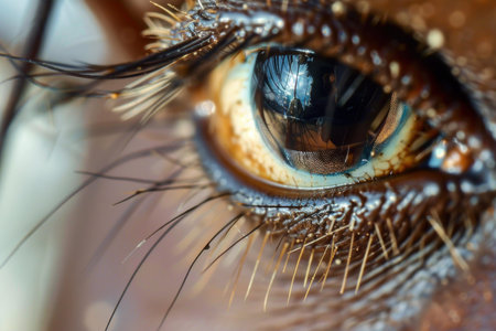 Detailed image focuses on a persons eye with long eyelashes, showing human body aspects and symmetry