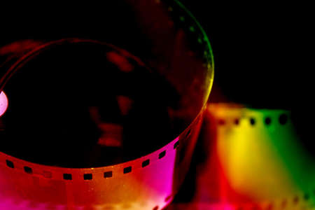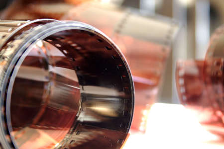 Close-up Film of a roll 35 mm photographic film; vintage tone style,soft focus