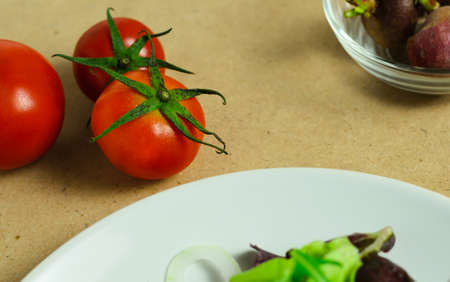 Fresh salad with tomato and fresh vegetable close up