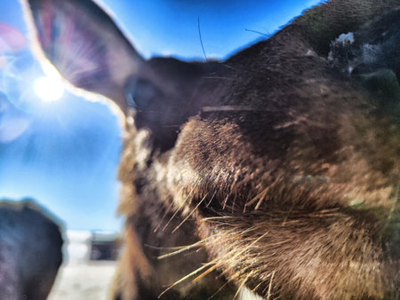 The nose of a domestic cat. Pet. Beautiful nose. Animal hair