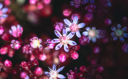 Macro close up of succulent pink flowers, selective focus