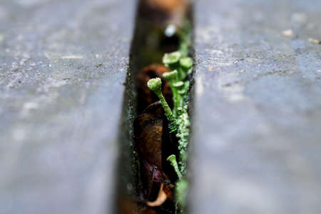 Clove green mushroom growing between the plates.