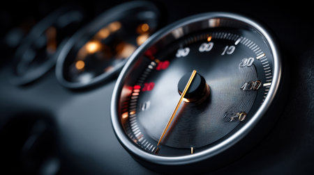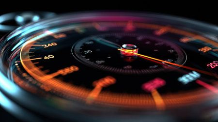 Futuristic gauge with red needle displaying speed and precision. That the image is generated using AI.