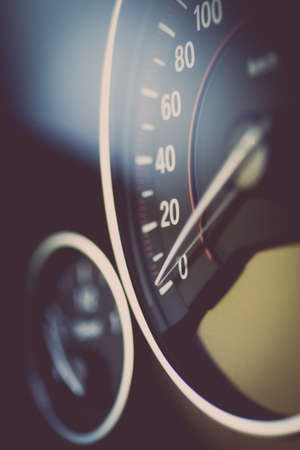 Dashboard with speedometer, tachometer, odometer. Car detailing. Car dashboard. Dashboard details with indication lamps.Car instrument panel.Modern interior.Close up shot.