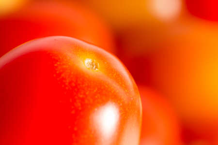 Group of fresh ripe cherry tomatoes selective focus macro shot with shallow DOF.