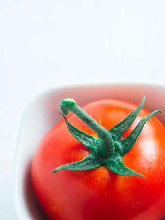 A half cut tomato isolated with a white background. Fresh healthy food, lifestyle concept, background.