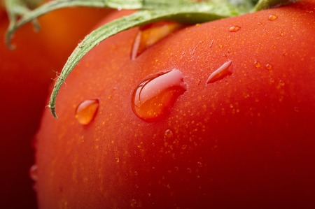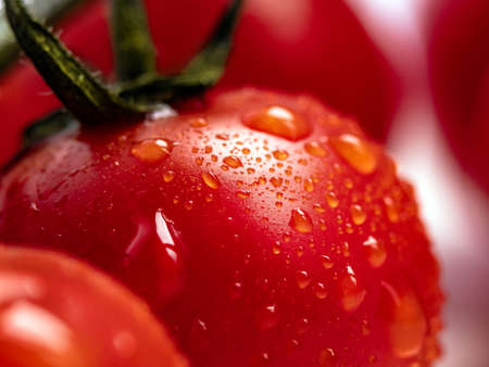 Fresh tomatoes sprinkled with water Fresh tomatoes covered with dew droplets
