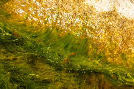 Seaside nature concept. Detailed close up of algae water green chunk seaweed