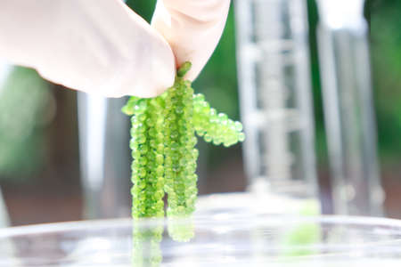 Sea grapes ( green caviar ) seaweed, Healthy food.