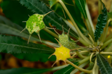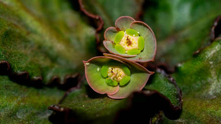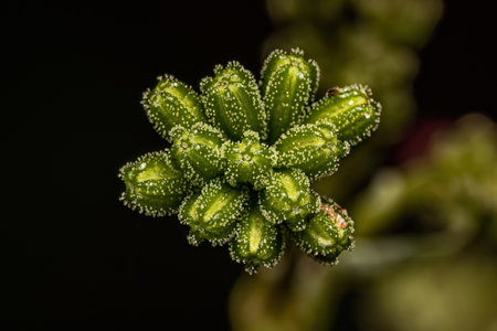Dorstenia foetida flower as reproductive structure. Star-shaped succulent flower