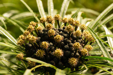 Miagos Bush flower (Osmoxylon lineare) blooming in shallow focus, a popular shrub cultivated as hedges and house plants.