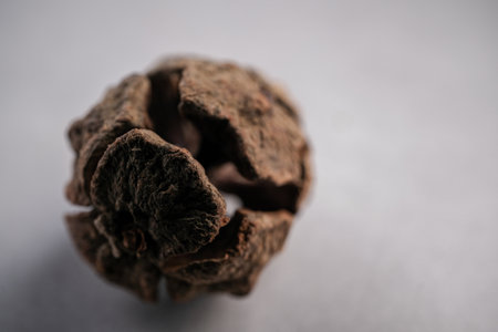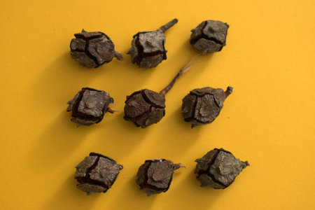 Scientific Macro Image of Dried Perforate Flower Heads on Stems: Botanical Detail of a Potential Herbal Medicine Ingredient.