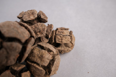 Aegle marmelos, sliced dried herbs, are used to make healthy drinks.