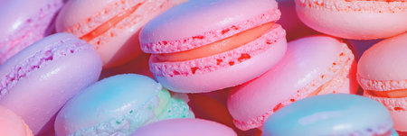 Sweet colorful cookies macaroons or macarons on colorful pastel colors background. Copy space. Delicious french dessert concept.