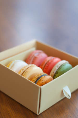 Tasty colorful macaroons in carton box