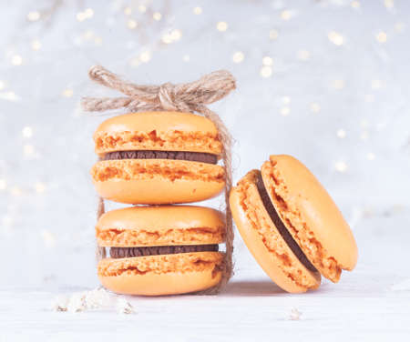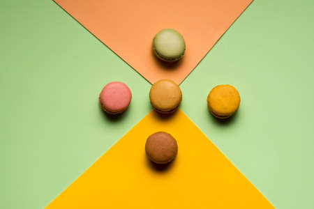 Macaroons on a yellow background. Macaroons are a French dessert.