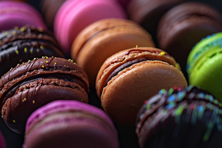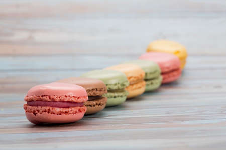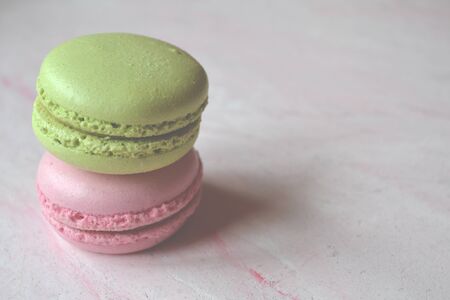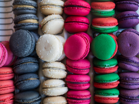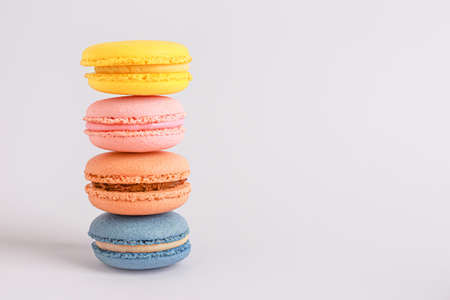 Colorful macarons or macaroons dessert sweet beautiful to eat.