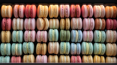 Colorful macaroons beautifully arranged in an artistic pattern for a delightful display
