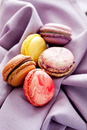 Colorful macarons on cloth