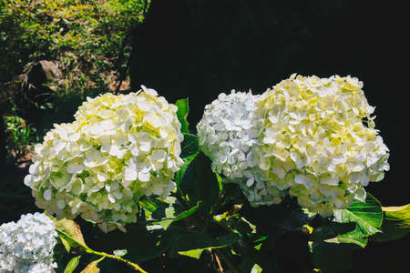 Hydrangea flowers blooming in the morning in the forest.