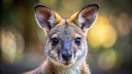Portrait of a wild kangaroo in the sun, close-up